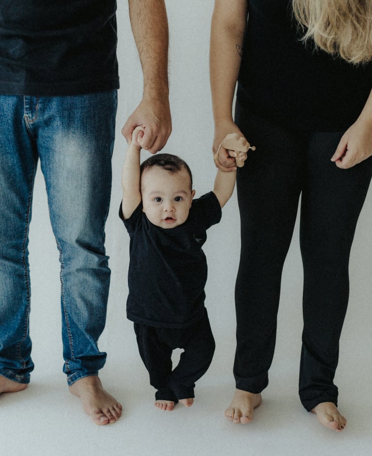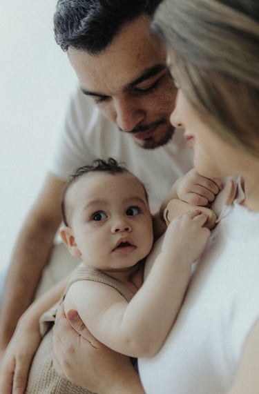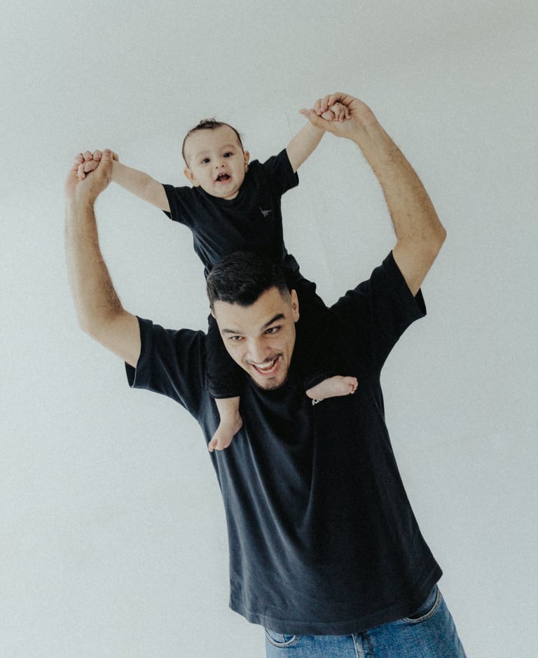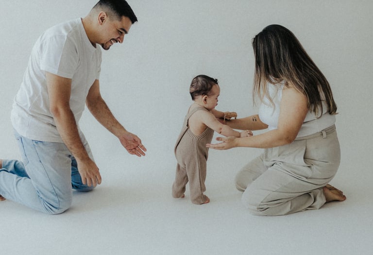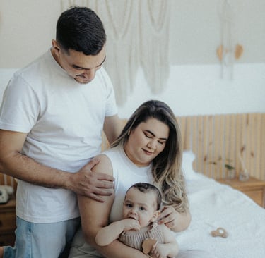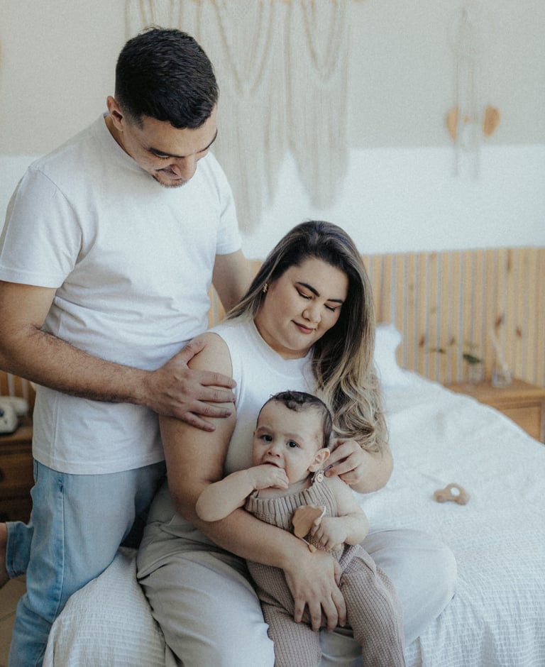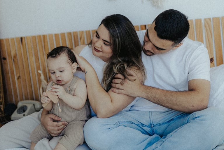 Nada é forçado. As risadas vêm quando o bebê se diverte, o colo vira o refúgio favorito e o carinho dos pais preenche o cenário.